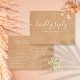Um cartão RSVP de script de assinatura elegante com tipografia quic em um fundo kraft rústico. O inverso apresenta os seus detalhes e uma solicitação divertida de música de convidado. Projetado por Thisnotme©