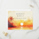 Uma elegante placa RSVP de pôr do sol da palmeira tropical com aquarela com tipografia quic. O inverso apresenta os seus detalhes e uma solicitação divertida de música de convidado. Projetado por Thisnotme©