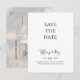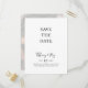Este cartão postal simples e elegante de foto desbotada para salvar a data é perfeito para o seu casamento moderno minimalista preto e branco. O design apresenta uma fonte contemporânea minimalista acompanhada por caligrafia formal. Mantenha-o como está ou personalize-o com sua própria arte ou fotos!