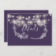 Um elegante cartão de informações de detalhes de casamento roxo com luzes de cordas bonito e flores desenhadas à mão. Personalize com seus detalhes especiais definidos na tipografia da na moda. Projetado por Thisnotme©