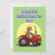 Esta vaca marrom engraçada está dirigindo um trator vermelho. Muito diversão para o agricultor ou amante de vaca! Adicione um pouco de fazenda ao seu evento de aniversário!