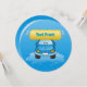 Um carro azul sorridente lavando-se com pincel de lavagem de roupa.