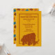 Dê a sua festa pré-histórica um toque divertido com esses convites de festas personalizados. Eles apresentam uma ilustração fofinha do estilo cartoon de um mamute malvado em vermelho ferrugem contra um fundo dourado. Há muito espaço para incluir todos os detalhes do seu partido em letras coloridas em negrito. O reverso tem um padrão de mamutes bonitos contra um fundo de ouro. Esses convites são perfeitos para crianças interessadas em paleontologia e animais de idade do gelo ou para festas temáticas de museu de história natural.