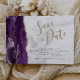 Este elegante e moderno salve a placa de data apresenta uma borda agitada de cor d'água púrpura aparada com falso brilho dourado. O texto personalizável combina um script de escrita manual dourado com a letra sans serif preta num fundo de mármore branco e cinza prateada. O verso apresenta um design de agate roxo e dourado correspondente.