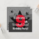 Carvão vegetal do aniversário dos MIÚDOS Grunge vermelho C9SA do 9o com estrelas. Você pode experimentar com os tipos de papel diferentes clicando do "na aba das opções convite" no canto de righthand superior. Eu recomendo o papel metálico hued do gelo que dá a seu convite do aniversário um shimmer e um brilho festivos. Bonito!