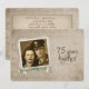 Convite de casa aberta para celebração de bodas de diamante com moldura de foto personalizada antiga e buquê de margaridas e pérolas.