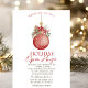 Bola de Natal vermelha com aquarela em fundo branco. Estes belos convites de Natal são perfeitos para convites de festas de janto de Natal, convites para troca de presentes de Natal, angariadores de fundos de Natal, convites para bolas de férias e outros eventos realizados durante o mês de dezembro. Use apenas os campos modelo para adicionar suas próprias informações de evento.