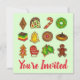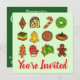 O design de convite apresenta uma ilustração original de uma fileira de biscoitos de Natal deliciosos em um fundo verde, com VOCÊ É CONVIDADO em uma fonte vermelha. Simplesmente personalize o dorso com as informações do evento. Ideal para festa de férias, casa aberta ou troca de biscoitos. Não vê o que está procurando? Precisa de ajuda para a personalização? Entre em contato com Rebecca para ter algo projetado só para você.