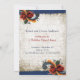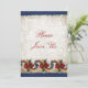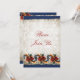 Elegante Convite de Casa Aberta de Férias em Fundo Sepia Floral com Acento de Rosemaling Tradicional Norueguês Escandinavo de Telemark em tons de ouro, verde e vermelho no azul. Personalize este convite único e sofisticado digitando seus próprios detalhes no verso. Ótimo também para guardar em seu álbum de recordações!