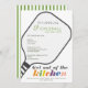 Vamos bater uma! Escolha este convite para Casa Aberta do Torneio de Pickleball para o seu aniversário, torneio, liga, aposentadoria, fim de semana ou qualquer festa com tema de pickleball! Este convite é a maneira perfeita de reunir jogadores, familiares e amigos para um Grande Evento de Pickleball! O design apresenta bolas de pickleball verde-claro.