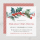 Com todas as vibrações festivas da época de Natal, este design de festas de festas abertas de festas corporativas apresenta um galho de cor d'água em vermelho, verde e lacre vibrante. Mostrado aqui como um convite de Holiday Open House, você pode editar todo o texto para se adequar a outras ocasiões ou tipos de eventos. De uma reunião festiva no escritório a uma festa íntima em casa, esta design funciona bem para muitos tipos de celebrações durante o Natal.