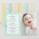 Convite Casa Amarela e Hortelã Geométrico em Madeira Rústi