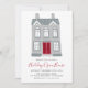 Convide convidados para sua casa aberta de férias com nossos convites de feriados. Os encantadores convites à casa aberta de férias ilustram uma casa de cinza com porta vermelha. Personalize os convites de férias adicionando os detalhes do evento abaixo. Os convites revertem para um padrão de flocos de neve vermelho-escuro e branco.