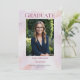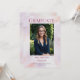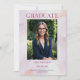 Um convite de casa aberta de graduação limpo e moderno projetado com tipografia “Graduado” em negrito para um visual confiante e contemporâneo. A frente apresenta uma única foto do graduado, enquanto ambos os lados são acentuados com um elegante fundo abstrato de aquarela. Tons suaves de roxo pálido e rosa avermelhado adicionam um toque gentil e feminino, criando um convite elegante e sofisticado perfeito para celebrar esse marco especial.