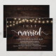 Casados, Anúncio de Elopamento de Casamento / Cartão de Convite, em Madeira Rústica de Fazenda, design de Luzes de Corda. Isso é perfeito para o seu casamento e festa de celebração pós-casamento. Adicione seus detalhes em fonte / letra correspondente.