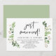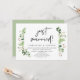Cartão de convite de fuga de casamento com tema de folhas verdes de verão, com escrita preta moderna (casados). É perfeito para a recepção de fuga de casamento / festa de celebração pós-casamento. Adicione seus detalhes em fonte preta correspondente.