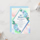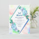 Um convite de casamento elegante com pintura de flores em azul com geometria de diamante para recepção de casamento.