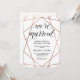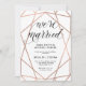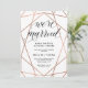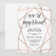 Esses convites "nós somos casados" ultra-elegantes e sofisticados apresentam um design geométrico em falso rose gold sobre um fundo branco limpo, e incluem tipografia caligráfica preta moderna. A maneira perfeita de convidar amigos e familiares para uma cerimônia pós-casamento ou recepção!