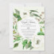 Tema pacífico e sereno da floresta florestal com folhas e sementes de eucalipto, juntou elementos do chão da floresta e rosas selvagens brancos pintados manualmente em aquarelas por Audrey Jeanne Roberts. O plano de fundo apresenta uma rica e profunda lavagem a aquarela verde da floresta. Está disponível um conjunto completo de decorações de chá e noivado para correspondência. Audrey Jeanne Roberts, todos os direitos reservados.