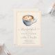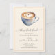 Adorável tema de café casais convite para chás de casamento. A xícara de café tem um coração de espuma! A incrível caligrafia de script adiciona ao olhar. Que design maravilhosa para o seu chá de panela de café. Veja a coordenação de itens no nosso compro, Encantado Finch.
