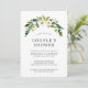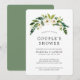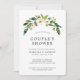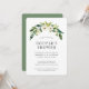 Convite elegante de casais florais para chuveiro de casamento com uma guirlanda pintada à mão com rosas brancas e folhagens no topo. O verso é um verde sólido e pode ser alterado para qualquer cor que desejar. Esses convites são perfeitos para um chuveiro de casais no verão.