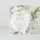 Convite Casais ovais de ouro de eucalipto, flores brancas,