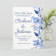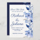 O design apresenta elegantes elementos florais azuis e poeirentos e a glória do azul marinho. O roteiro de caligrafia é simples e elegante. Este é um convite de casamento floral azul marinho moderno e elegante perfeito para o seu casamento azul marinho. Esta é uma design perfeita para pessoas que adoram a combinação estética azul empoeirada e marinho azul. Este é um belo, maravilhoso, maravilhoso convite para casamento floral perfeito para o seu casamento de primavera. Pegue esta design se você ama convites de casamento azuis marinho. Os vários tons de azul usados nessa design são muito atraentes para os olhos. Estas flores azuis acrescentam um incrível aspecto estético ao seu casamento.