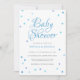 Apresentando bonito corações de amor azuis espalhados em torno de seus detalhes personalizados, definidos em na moda no texto deste chá de fraldas chic, borrifo ou chá. Projetado por Thisnotme©