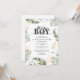 Garotos selvagens, calmos e elegantes, açari, convite para chás de fraldas de animais com girafa, efeito ouro e folhas verdes. Perfeito para convites de orçamento de chá de fraldas para rapazes