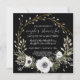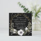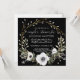 Moody black and white para um Convite de Chá de na moda contemporâneo. Febre simples e elegante de galinha salgada com folhagem de folha de ferno e eucalipto com o hálito do bebê e flores brancas de anêmona. A cor preta de fundo pode ser alterada. No verso, está o seu rsvp e informações de registro. Arte pintada por uma artista e designer internacionalmente licenciada, Audrey Jeanne Roberts, direitos autorais, todos os direitos reservados.