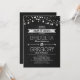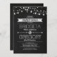 Casais de quadro negro convite para chás com fio de luz e tipografia moderna decorada com setas de amor e acompanhada de faixa em apuros. Convite perfeito para o tema de chá de casais rústicos com sotaques de luzes cintilantes.
