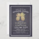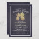 Modelos De Cartão De Convite Para Janto De Ensaio De Casamento - Casal De Abacaxi De Espessura Ouro Faux Elegante no Marinho Azul Floral Damasco Linen. Um Design perfeito para o seu grande dia. Todo estilo de texto, cores, tamanhos podem ser modificados para ajustado das suas necessidades!