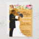 Faça sua primeira impressão por último com este incrível convite floral de ouro com um casal de casamento afro-americano. Personalize este convite para o casamento para que seja seu. Este convite também está disponível em azul real e sepia.
