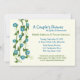 Flores azuis brancas e divertidas em um convite à videira para um chá de panela ou qualquer ocasião. Personalize o texto de acordo com as suas necessidades. Entre em contato com o designer para obter opções de cor adicionais.