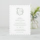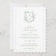 Convite de casamento formal e elegante com monograma em verde sage, código QR e informações mais detalhadas no verso.