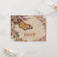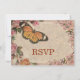 Uma bela coleção de casamento começa com imagens bonitas. Este cartão de RSVP inclui desenhos florais e uma adorável ilustração de borboleta antiga.