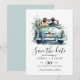 Esta bela ilustração em aquarela apresenta um casal encantador em um carro antigo, perfeito para um convite "Salve a Data" romântico. As cores suaves e o design nostálgico criam um sentimento atemporal, ideal para casamentos e ocasiões especiais. Personalize seu convite com esta arte elegante e única para tornar seu evento verdadeiramente memorável.