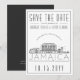 Um convite de casamento único para salvar a data, para um casamento que acontecerá na bela ilha da Jamaica. Este convite apresenta uma ilustração estilizada da linha do horizonte única com seu nome abaixo. Isto é seguido pelas informações do seu dia de casamento em um estilo aberto correspondente. No verso do convite há uma cor cinza escuro para complementar a aparência e a sensação. Todos os elementos individuais do cartão de convite são desbloqueados para que você possa alterar quaisquer detalhes necessários, como tamanhos de fonte, estilos e muito mais, usando a função de personalização. Você pode adicionar uma foto ao verso e aplicar um filtro preto e branco a ela. Divirta-se sendo criativo e fazendo com que seja seu!