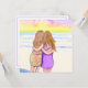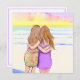 LGBTQIA+ mulheres lésbicas ou convites para casamento transgénero. Bonito ilustração aquarela de duas mulheres em uma praia olhando para a água e o pôr do sol.