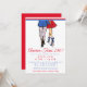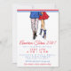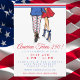 Celebre o 250º aniversário da América com estilo com este convite de festa préppy e patriótico que apresenta um casal fashion vestido de vermelho, branco e azul. O design apresenta um homem charmoso com calças estampadas com a bandeira e um blazer azul, segurando uma cerveja, com o braço em volta de uma mulher de vestido vermelho e saltos azuis, criando a combinação perfeita de diversão, moda e espírito americano.