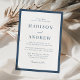 Celebre o seu dia de casamento com este convite de casamento com borda azul-marinho moderna, apresentando uma moldura azul-marinho rica que traz profundidade e sofisticação atemporal para um layout limpo e minimalista. A clássica borda azul-marinho cria um contraste refinado contra o fundo branco, enquanto a tipografia serif elegante e um sutil sotaque de letra cursiva conferem um acabamento polido e discreto. Ideal para cerimônias formais, locais tradicionais e celebrações modernas clássicas, este convite oferece uma base versátil que se sente contemporânea e duradoura. Personalize a redação para criar um convite coeso que define um tom confiante e elevado para o seu conjunto de papelaria de casamento.
