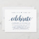 Cartão de convite temático Moderno Rústico, Azul Marinho Script (com título do cartão: agora é hora de celebrar). É perfeito para o seu casamento à fuga / festa de celebração pós-casamento. Adicione seus detalhes em fonte / letra preta correspondente.