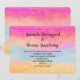 Um convite de casamento com um desenho abstrato pintado. Listras amarelas, azuis e rosas. Imagem de fundo ousada e vibrante.