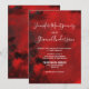 Convite de casamento com um padrão abstrato moderno. Cores vermelhas e pretas se entrelaçam, se misturam e se fundem. Criativo, artístico e único com um toque sombrio e misterioso.