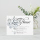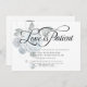 Adiamento | Um buquê translúcido de rosas em aquarela azul empoeirada - O Amor é Paciente em caligrafia cursiva - Se você já enviou os convites e teve que pausar inesperadamente a data do seu grande evento, envie estes aos seus convidados. Personalize o texto, estilo de fonte, cor e tamanho. Arte original criada para a BarefootBride™ por © WhimsicalArtwork™ - Esta é parte de uma Suite Completa de Papelaria de Casamento com papelaria de casamento, chá de bebê e outros eventos.