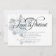 Adiamento | Um buquê translúcido de rosas em aquarela azul empoeirada - O Amor é Paciente em caligrafia cursiva - Se você já enviou os convites e teve que pausar inesperadamente a data do seu grande evento, envie estes aos seus convidados. Personalize o texto, estilo de fonte, cor e tamanho. Arte original criada para a BarefootBride™ por © WhimsicalArtwork™ - Esta é parte de uma Suite Completa de Papelaria de Casamento com papelaria de casamento, chá de bebê e outros eventos.
