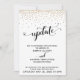 A distinção deste conjunto se deve à fonte de roteiro moderno adornada com corações e fundo de confetes dourados. Se você está na posição de precisar informar aos seus convidados de casamento que precisou mudar a data, aqui está uma opção elegante. Nesta peça, a bela caligrafia foi usada para criar um gráfico que representa a palavra "atualização". A palavra "amor" foi colocada no verso e pode ser removida se preferir. Use os campos do modelo para adicionar seus detalhes pessoais e tornar este design festivo e moderno seu. Por favor, entre em contato para qualquer solicitação especial ou para obter ajuda na personalização. // 80 //