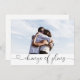 Anuncie que seu casamento foi adiado para futuros convidados com estes cartões de mudança de data. Com a sua foto e "mudança de planos" em caligrafia com coração. Personalize com sua foto e detalhes do casamento.