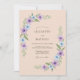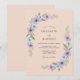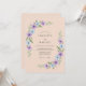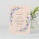 Este design apresenta um fundo suave de pêssego adornado com flores etéreas em lavanda e azul pálido em estilo aquarela. Pétalas delicadas que lembram anêmonas são combinadas com folhagem verde sálvia tênue para uma sensação leve e aérea. O estilo pictórico evoca um clima romântico e caprichoso, ideal para um evento sazonal de primavera ou verão.