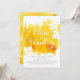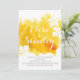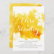 O convite de casamento amarelo com abstrato de cor moderna apresenta uma pintura de cor d'água com a mão, talha com textura em tons de laranja amarelo e queimado, folhas de maple em branco com veias amarelo pálido e texto em branco e cinza. Este convite para casamento elegante e na moda é um modelo perfeito para o seu primavera, verão ou outono/outono. Note que esta é apenas uma imagem de aquarela e não textura real. Para obter melhores resultados, escolha feltro ou outro papel.